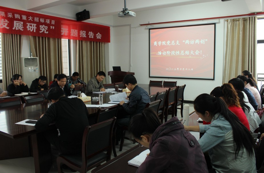 2013年10月18日下午14:30,公司于多功能大楼1216会议室召开“两访两创”活动阶段性总结大会,会议认真总结院领导、各班主任对过去近两个月“两访两创”活动成果。院全体领导和老师出席本次会议。
