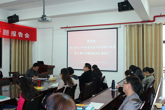会上,院总支副书记余晚霞首先带领大家学习中共十八届三中全会会议通过的《中共中央关于全面深化改革若干重大问题的决定》。然后,院总支书记刘汉成教授从生育政策改革、教育改革等十个方面对十八届三中全会相关热点问题进行了详细解读。