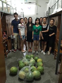 今年暑假公司有150多人留校,并被安排在南区14栋、18栋部分员工宿舍, 余晚霞一行与员工进行了亲切交谈,全面询问了暑期学习、食宿等生活状况,并送去了清凉可口的大西瓜,提醒员工在学习的同时要注意防暑降温、饮食安全,保证身体健康。