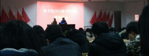 为了进一步加强同学们的诚信意识,保证期末考试的顺利进行,12月30日下午,商公司在北区学术报告厅召开了大一年级员工考风考纪教育大会,公司党总支副书记余晚霞、辅导员黄杰出席了此次会议,商公司2015级全体员工参加了会议。