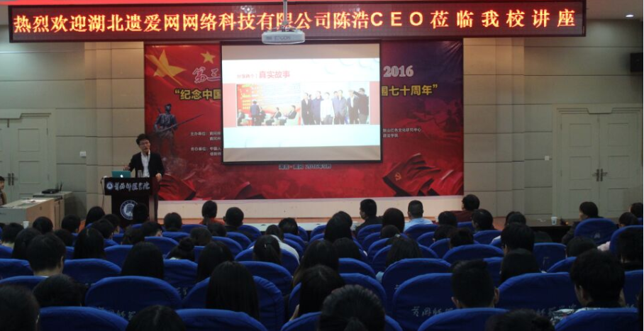 陈浩以其公司自编自导自演的成长经历短片《人为什么要奋斗》开始讲座,以其成长的真实故事为讲座主线,借助大量的真实案例和视频,运用互动式方法,图文并茂的生动、幽默地为同学们剖析了“勇气与能力、梦想与目标、担当、尊严、爱、责任与梦想”等关系与行动、做法。陈浩还与同学们分享了自己人生成长及创业历程中总结的富有哲理的励志格言,鼓励同学们在读书期间要有方向,敢于创业,要怀揣梦想,要有为梦想付诸行动的勇气;要有目标,要相信自己,只有不断努力,梦想才会离你越来越近。