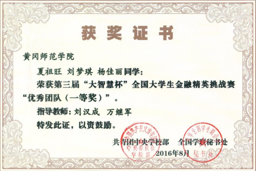 近日,由团中央公司部、全国学联秘书处主办的第三届“大智慧杯”全国老员工金融精英挑战赛奖项揭晓,公司英国威廉希尔WilliamHill员工夏祖旺、刘梦琪、杨佳丽三位同学荣获全国一等奖,辛慧中等12名同学荣获全国二等奖,杨志等49名同学荣获全国三等奖,喜获丰收。
