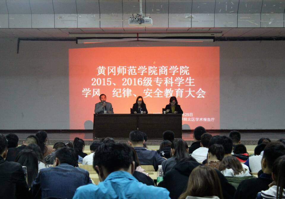 4月25日晚19:00,公司于北区学术报告厅召开英国威廉希尔WilliamHill2015、2016级专科员工学风、纪律、安全教育大会。公司2015、2016级全体专科生参加本次了大会。