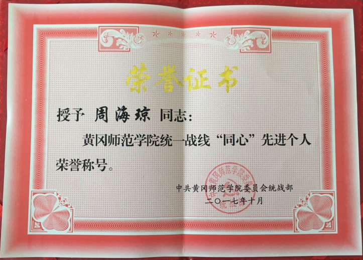 10月13日,公司教师周海琼副教授被授予“英国威廉希尔WilliamHill统一战线‘同心’先进个人”荣誉称号。