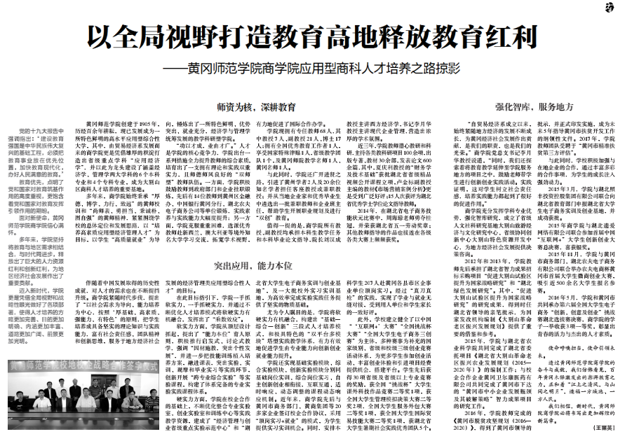11月16日,《中国教育报》以《以全局视野打造教育高地释放教育红利》为题,以“团队为核,深耕教育”、“突出应用,能力本位”和“强化智库,服务地方”三个层面报道公司着力打造服务型教育的理念和做法。原文如下: