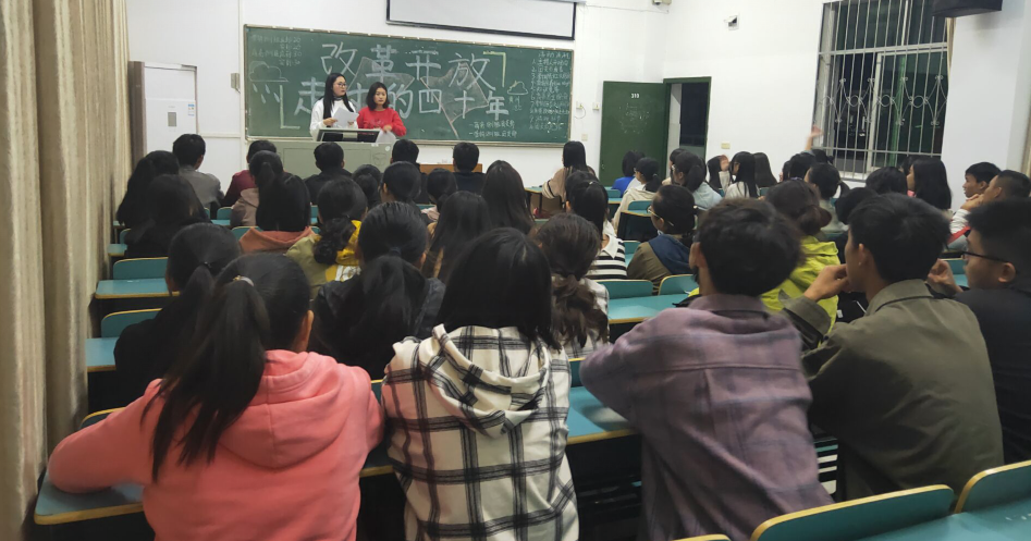 团会以班级为单位展开,内容丰富,形式多样。同学们通过观看《厉害了,我的国》等视频切实感知到了改革开放的光辉历程,通过参与知识竞答更加全面掌握了改革开放的相关知识,通过朗诵诗词激发了大家的爱国热情。团会过程中同学们配合默契、气氛活跃、纪律严谨。黄杰老师在参加金融1801、金融1802班团会时强调,新时代的老员工要谨记习近平总书记的教导,要肩负“不负人民重托,无愧历史选择”的使命,要增强思想道德素质和科学文化素养,把自己的人生价值与中华民族伟大复兴中国梦的实现紧密结合起来。