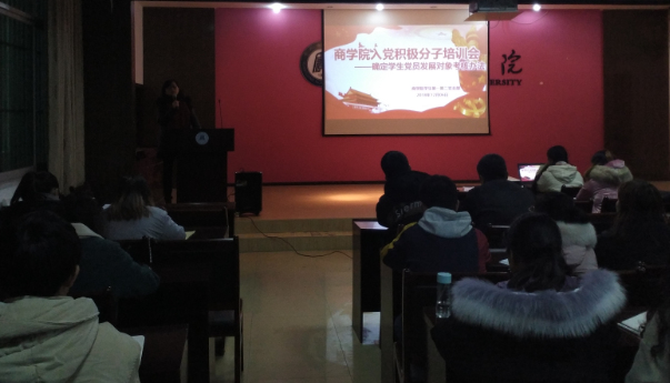 12月06日下午,为使公司入党积极分子了解和熟悉发展工作流程,员工党支部书记程惠以《确定员工党员发展对象考核办法》为题,在致远楼3楼会议室给80多名入党积极分子召开培训会。