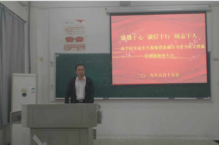 此次会议由高可欣主持。大会第一项,汪继东老师发言,首先他对即将毕业的同学表示殷切的希望和衷心的祝愿,然后为大家简短的介绍了诚信还款的相关内容,并指出召开大会的意义所在:一,生源地助学贷款是国家政策的优惠,同学们要牢牢抓住其机会,为走向社会做好充足准备;二,讲诚信是为个人的美好前程做好保障,希望同学们毕业后可以自食其力,脚踏实地,诚信做人;三,希望同学们在毕业后要学会感谢社会、回报社会,做一个有益于社会的人,争当社会的先进青年。最后,老师希望毕业生树立先就业后择业的观念,在毕业之前找好中意的就业单位。期间,即将毕业的员工代表张乙丹、刘玉川上台发言,他们表达了对老员工活的怀念,感激国家给予的机会,感谢党和公司的关怀,感谢一直在他们身边支持他们的老师和朋友,他们会不忘自己肩上的责任与重担,用自己的点滴行动回报社会。最后,大会在同学们的签字后圆满结束。