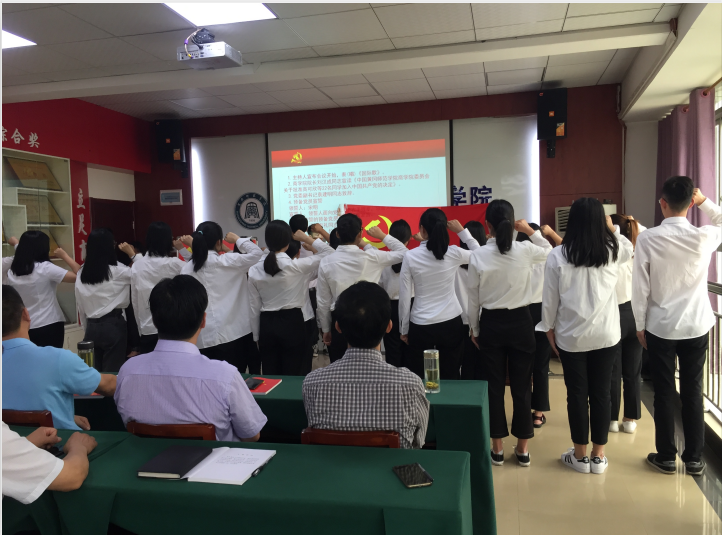 6月13日下午15:00,我院在致远楼704会议室召开了隆重而庄严的预备党员入党宣誓会议。学公司党委全体班子成员、员工各党支部书记及员工党员、上半年新发展的预备党员及入党积极分子代表共90余人参加了此次会议,会议由公司党委副书记袁建明同志主持。