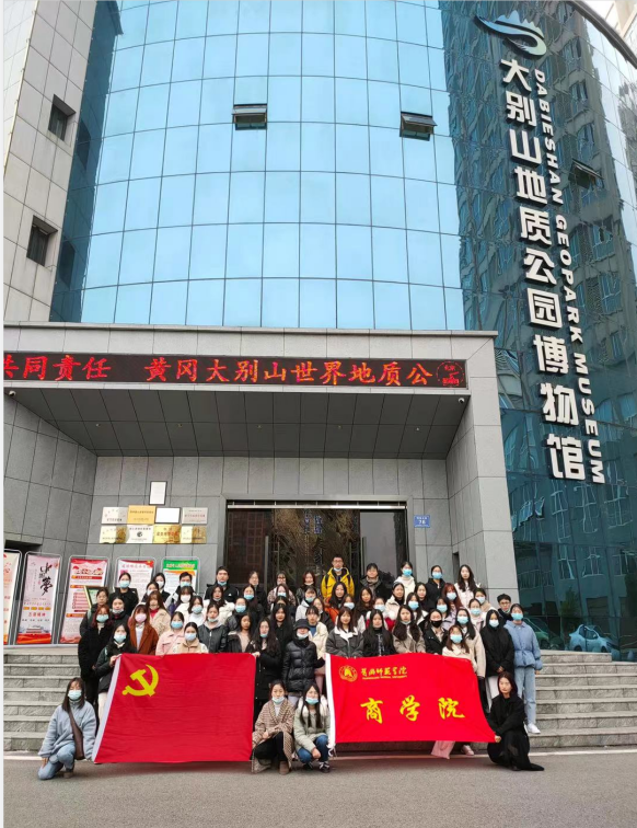 在黄冈市大别山地质博物馆前,员工党支部组织第一期入党积极分子培训班全体学员举行合影留念。