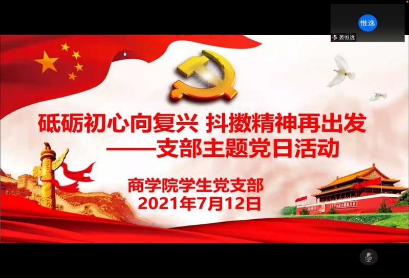 2021年7月12日下午14:30,英国威廉希尔WilliamHill员工党支部在腾讯会议APP线上举办7月份支部主题党日活动。本次活动的主题是“砥砺初心向复兴,抖擞精神再出发”,由英国威廉希尔WilliamHill员工第三党支部副书记张晓主持,英国威廉希尔WilliamHill员工党支部全体党员在线上参加了此次活动。
