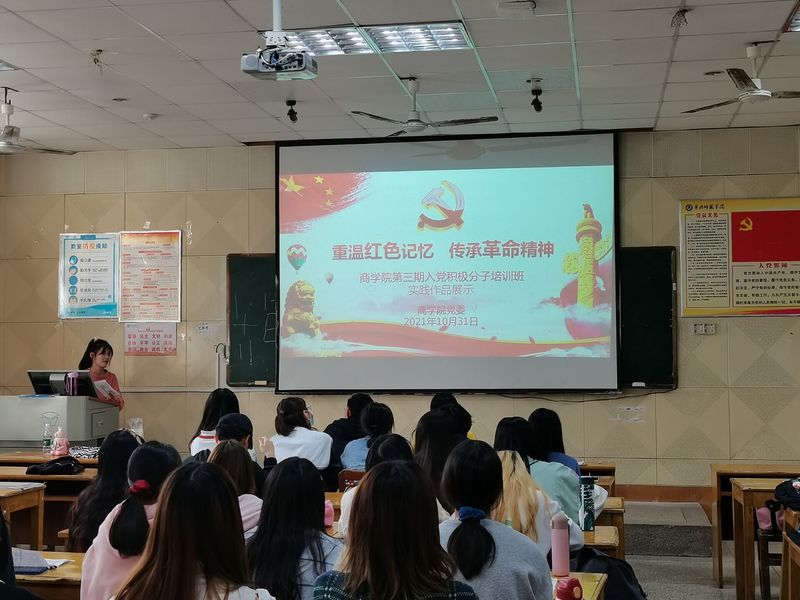 2021年10月31日,为了进一步坚定广大入党积极分子的理想信念增强党性修养,公司党委第三期入党积极分子培训班学员,在力行楼207教室开展以“重温红色记忆,传承革命精神”为主题的实践作品展示。