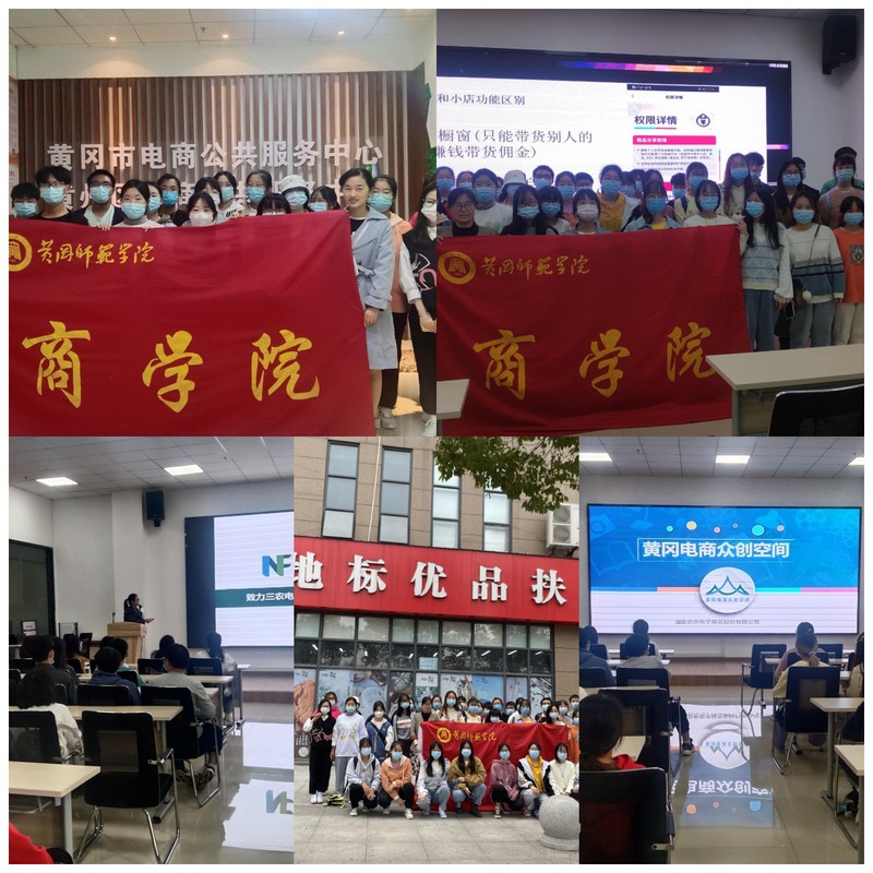 接着农夫电商副总刘梅女士与大家分享了公司的与运营理念与运营模式,同时带领同学们到黄冈地标优品扶贫馆,领略到黄冈地标黄梅县,罗田县,红安县,浠水县等地域特色,通过电商平台互联网销售实现扶贫助农,把黄冈特色推广全国。在参观了大别山网红基地时,有同学大胆的尝试了直播带货,学会了直播带货的流程,体验了直播带货的乐趣。