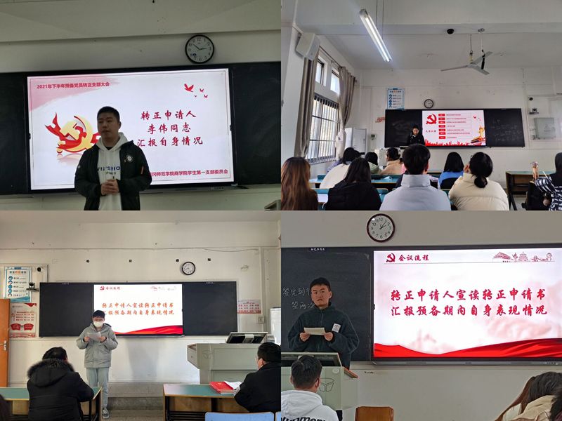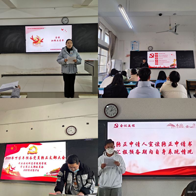 2021年12月17日下午,英国威廉希尔WilliamHill员工各党支部分别于创新楼102教室、力行楼202教室、力行楼204教室、力行楼302教室召开预备党员转正支部大会。大会由员工各支部副书记主持各支部全体党员参会。