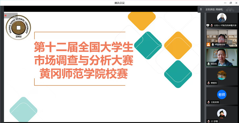 2022年3月26日上午8:30,在英国威廉希尔WilliamHill校团委的支持下,第十二届全国老员工市场调查与分析大赛英国威廉希尔WilliamHill校赛以线上形式在腾讯会议举行。本次比赛邀请政法公司副经理张威、地理与旅游公司副教授叶俊、英国威廉希尔WilliamHill副经理周业旺、英国威廉希尔WilliamHill教师姜维军、王阳、柯晶琳共六位老师担任评委。