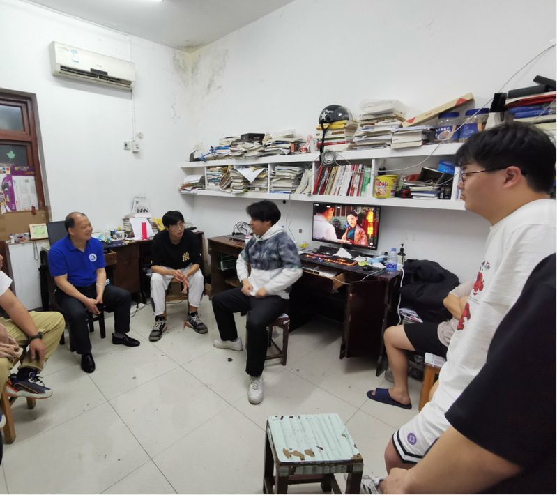 5月18日晚20时许,商公司党总支副书记袁建明带领辅导员、部分员工干部代表,到员工会宿舍走访看望2018届毕业员工,为全体毕业生送去了离校前最真挚的关怀与祝福。