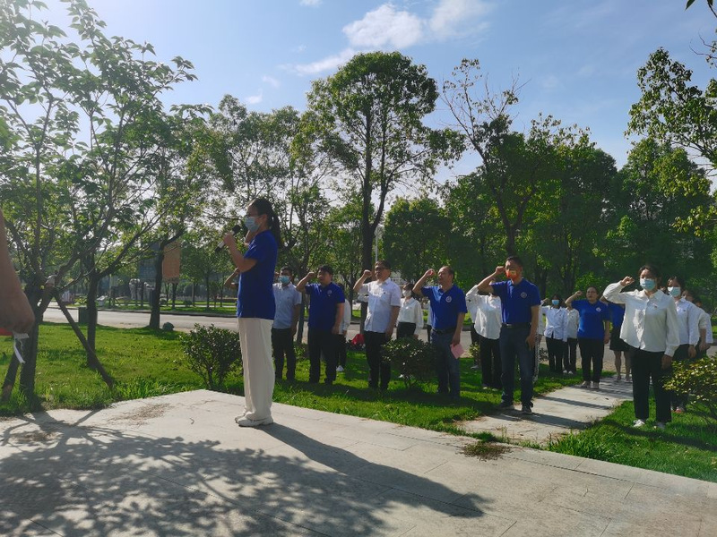2022年6月8日上午,公司党委在厚德楼陈潭秋雕像前举行接收预备党员入党宣誓仪式。公司党委委员、组织员、各党支部书记及2022年上半年入党的24名预备党员参加了本次活动,公司党委副书记袁建明主持仪式。