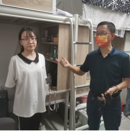 袁书记叮嘱同学们遇到困难要及时和班主任、辅导员、专业老师和班助沟通。此外,袁书记对员工的安全倍加关心,一再叮嘱新生一定要注意安全,提高安全意识,并仔细查看了各个寝室的各种设施,确保设施的完善性。