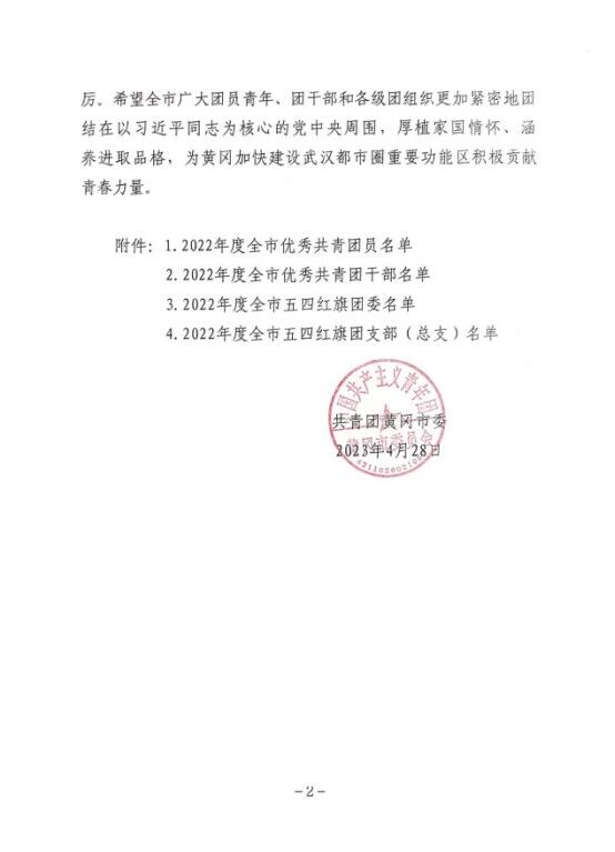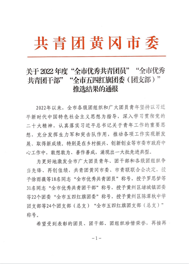 五月捷报!共青团黄冈市委在“五四”青年节来临之际下发《关于2022年度“全市优秀共青团员”“全市优秀共青团干部”“全市五四红旗团委(团支部)”推选结果的通报》,公司团委从层层评比中脱颖而出,摘得共青团黄冈市委授予全市基层团组织的最高荣誉——“全市五四红旗团委”。