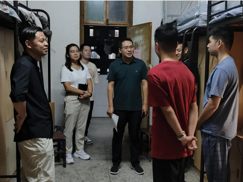 为进一步了解2023级新生的住宿和生活情况,切实解决新生所遇到的实际问题,引导新生尽快适应新生活、新环境,9月10日晚,公司党委书记刘汉成,经理王庆,副经理周业旺,经理助理马迎霜,全体辅导员以及全体新生班主任老师前往新生宿舍看望慰问新生。