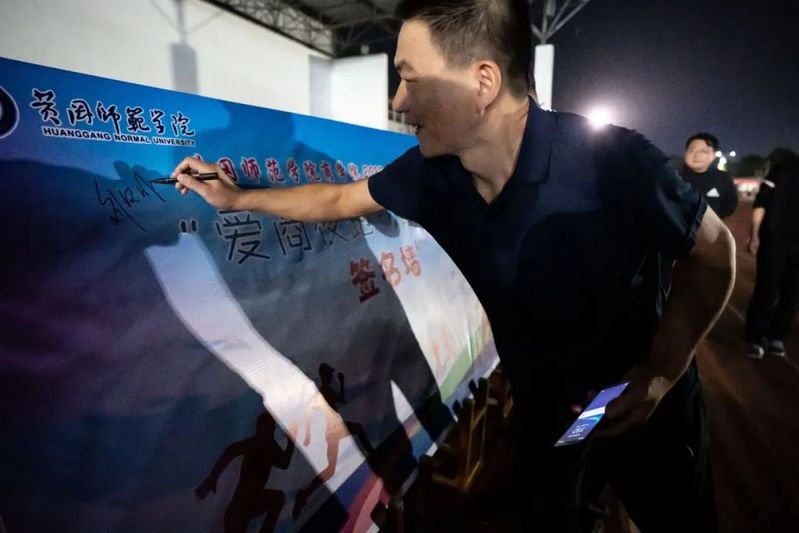 正式开跑前,乔晨欣同学的倡议书让我们充满激情,对体育运动的理解更为深刻。签名墙上飞扬的字体展露了师生们的热情,展开的横幅描述了师生们的决心。