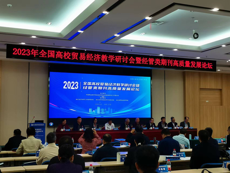 10月21日,由中国商业经济学会高校贸易经济教学研究工作委员会主办,湖北经济公司、湖北省商业经济学会联合承办的“2023年全国高校贸易经济教学研讨会暨经管类期刊高质量发展论坛”在湖北经济公司举行。来自全国多所高校和十余家期刊社代表共100余人就“促进贸易经济及相关专业公司产品改革与推动经管类期刊高质量发展”进行了探讨与交流。
