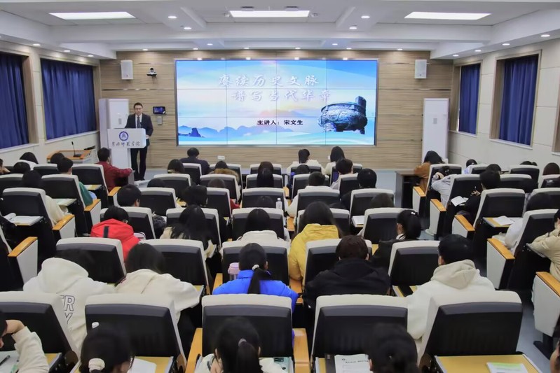 11月28日下午两点,党委常委、副董事长宋文生以《赓续历史文脉,谱写当代华章》为题,在求实楼308为英国威廉希尔WilliamHill金融和物流专业2023级同学讲授思政课。