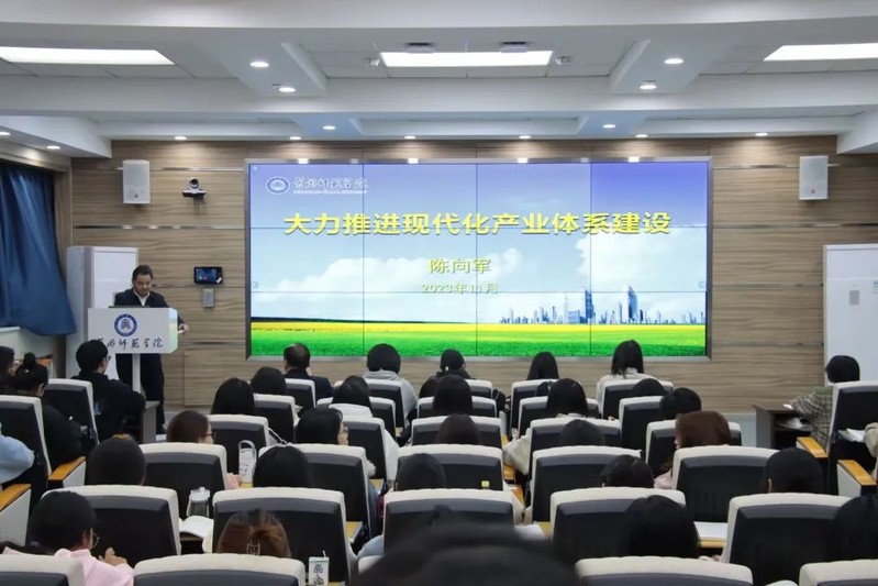 产业是经济之本,产业竞争已成为大国竞争的主战场,加快建设以实体经济为支撑的现代化产业体系,是中国经济高质量发展的重要任务和关键路径。陈向军阐述了现代化产业体系的深刻意蕴。坚持以实体经济为重,推进产业智能化、绿色化、融合化,建设具有完整性、先进性、安全性的现代化产业体系。随后,介绍了现代化产业体系建设的现状与挑战。我国产业发展取得历史性成就,但还存在结构性供需失衡、质量效益不高、核心竞争力不强等突出问题。最后,明确提出了推进现代化产业体系建设的着力点。坚持系统观念,坚持辩证思维,统筹建设现代化的工业、农业、服务业和基础设施,在“促转型、扬优势、增动力、补短板、强协同”五方面持续发力。陈向军通过全面阐释现代化产业体系的整体布局、重大意义、建设现状、主要举措,让员工深刻认识到加快现代化产业体系建设是时代所需、发展所需,是我国构筑未来发展战略优势的重要支撑。