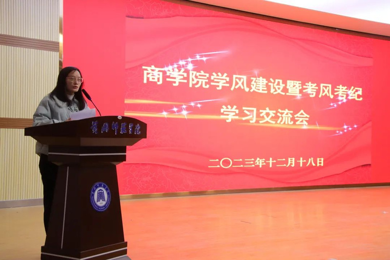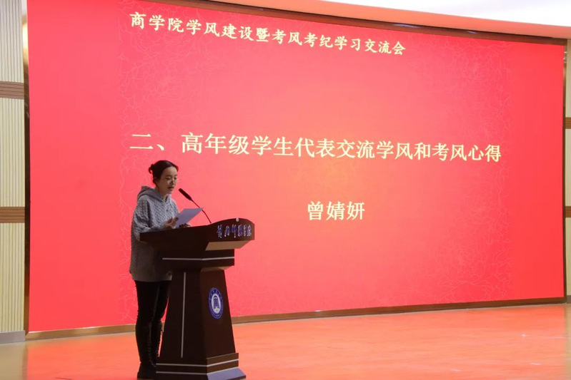 首先是大四年级代表曾婧妍与我们分享她的考风心得,提出学风是员工思想道德品质、学习精神与综合素质的重要体现,是员工成长的基础和前提。随后是大三年级代表汪晨曦上台分享,她认为我们作为莘莘学子中的一员,理应脚踏实地、诚信应考,相信只要我们努力过,就一定会有好结果。