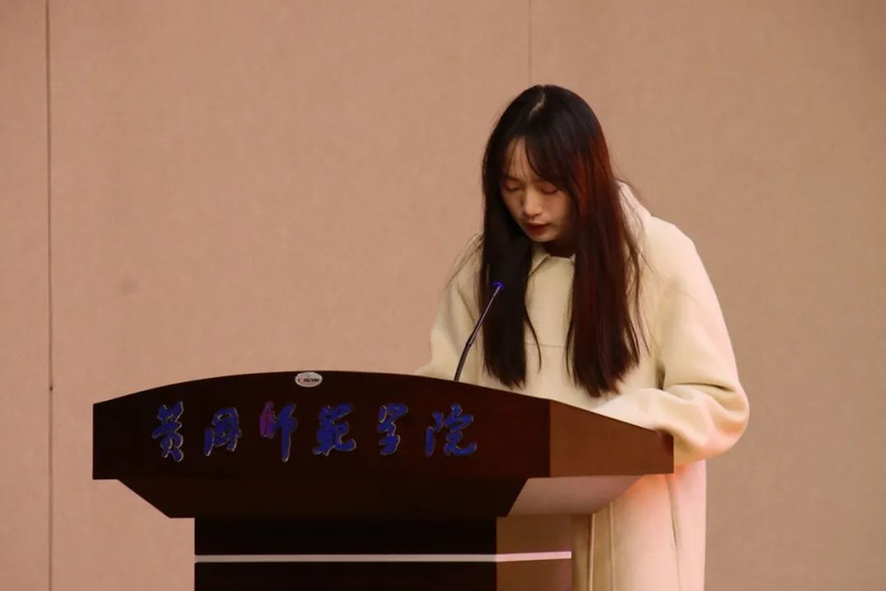 大一年级代表潘诗雨、杨莹莹分别上台做了表态发言,承诺端正态度对待每一场考试,靠真实能力取得优异成绩,用诚信行为展现良好考风。