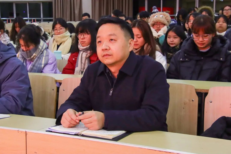 副书记李传坤作学风建设工作讲话,他指出,学风反映了老员工的学习风貌和精神风貌,表现在上课、自习、竞赛、体育、社团活动等各方面,学风与考风相辅相成,学风好、考风就会好。他要求,同学们要学会调整考试心态,适应大学考试模式,合理安排好时间,讲究考试技巧,遵规守纪,沉着冷静、全力以赴考出好成绩。最后,他对临近期末,天气寒冷,强调同学们要注意保暖、注意防范,务必加强宿舍用电安全、财产安全、校园交通安全、校外人身安全等。