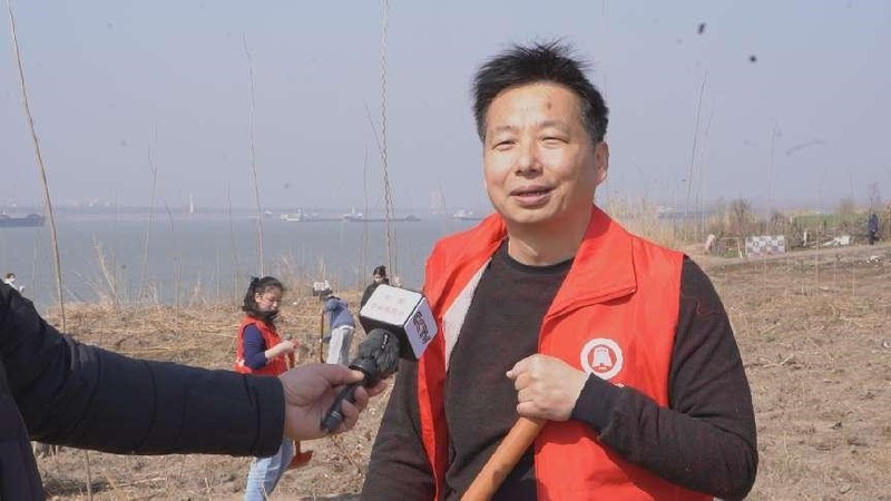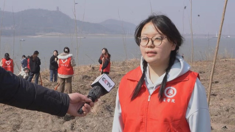 志愿者覃天一说:作为一名青年党员,在植树节义务种树,为长江生态保护贡献一份力量,推动长江流域生态环境治理,是每个党员同志应尽的责任。