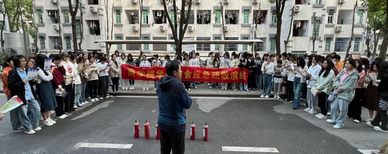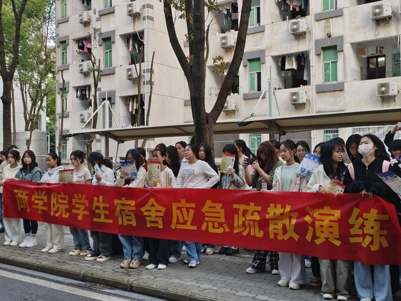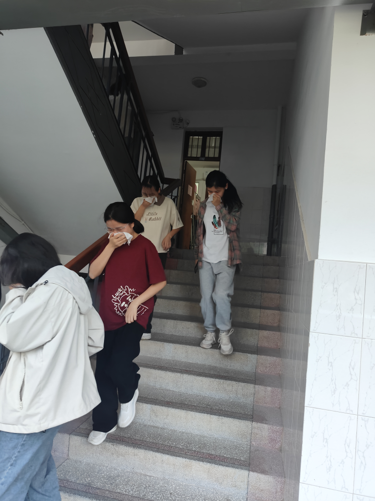 本次演练通过烟雾弹模拟火灾环境,让同学们亲身感受火灾场景。随着三次哨声吹响,在浓烟四起中开始。面对突发警报、浓烟滚滚,同学们也没有惊慌失措,而是有条不紊地用湿毛巾捂着鼻子、躬着身子依次离开寝室,排成一列纵队,在员工会干部的指挥下,按照指定逃生路线迅速地从宿舍撤离到了安全的空旷场地。全体同学沉重冷静、互相合作,一切行动听从指挥,在演练过程中做到了不慌乱、不拥挤。