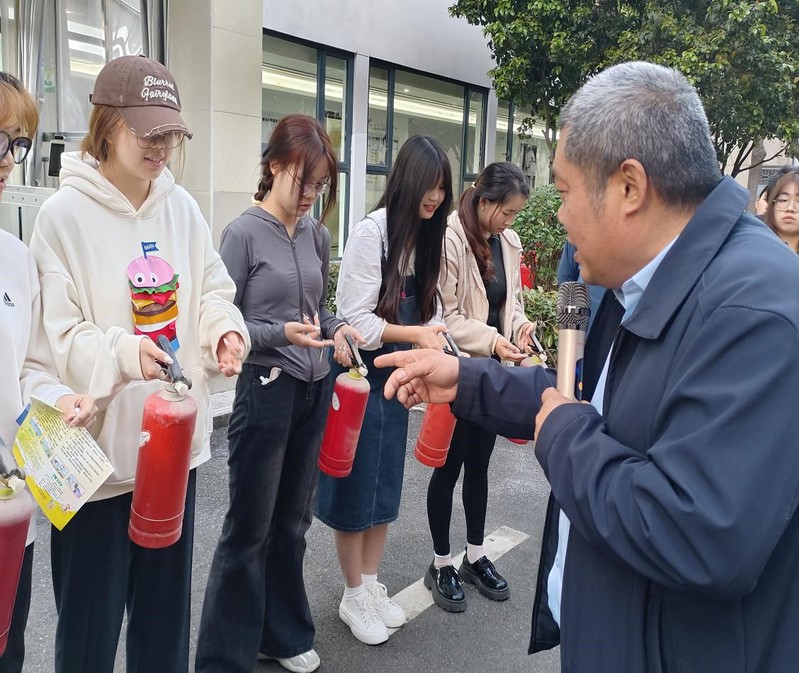 集团消防科郭平军老师强调,发生火灾不要接打电话、一定要用湿毛巾捂住口鼻弯腰快速下楼、然后在逃生时不要穿拖鞋、尽量往空旷地带跑等等要点,提醒同学们一定要注意宿舍安全、避免灾害。他强调,发生火灾发生时切忌慌乱,判断火势来源,采取与火源相反方向逃生。切勿使用升降设备 (电梯)逃生。 切勿返入屋内取回贵重物品。夜间发生火灾时,应先叫醒熟睡的人,不要只顾自己逃生,并且尽量大声喊叫,以提醒其他人逃生。