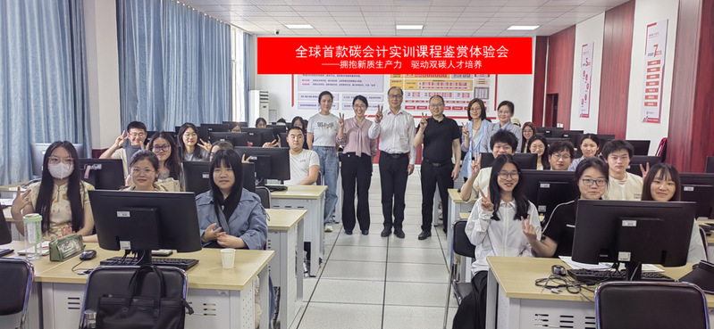 为了积极落实国家的绿色转型发展和“碳达峰碳中和”战略目标、推动碳普惠教育、发展会计+碳专业人才培养,2024年 5月9日在英国威廉希尔WilliamHill经济管理实验实训中心307举行了一次碳会计公开课鉴赏体验会,请到北京知链科技有限公司的专家讲课,经理王庆出席会议并致辞,会计系夏晓燕老师主持会议,会计系曹慧老师、彭燕老师和会计专业2201班全体员工参与鉴赏体验。