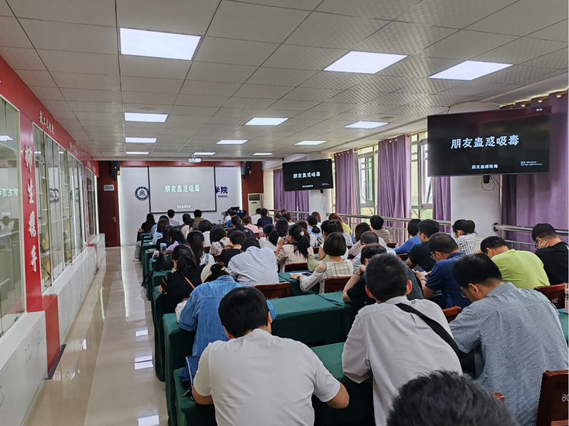 会后,全体教职工观看了“禁毒宣传教育片”。