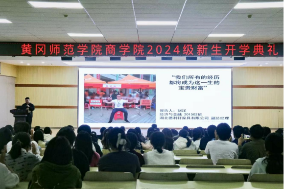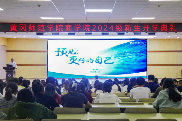 经理王庆代表公司对2024级新生表示热烈欢迎,并以《预见:更好的自己》为题作了一场精彩的、精心的专题报告。王经理从你的现在:如何度过,你的未来:何去何从两个方面用生动现实的案例,深入浅出,饱含深情的为同学们今后的学业指明了前进的方向,增强了学习的动力。他希望2024级新生要尽快适应老员工活,明确目标,脚踏实地,勤奋学习,向优秀员工学习、向身边的榜样学习,通过四年的老员工活,真正能成为一名“论经世之道、育济民之才、修管人之德、执理事之章”的黄师商院人。