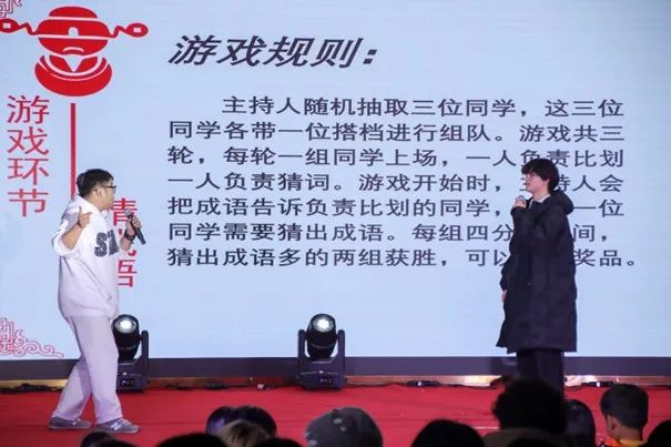 精彩的节目过后,我们来到了趣味的成语游戏环节,观众们踊跃参与,欢声笑语充满了整个北报。