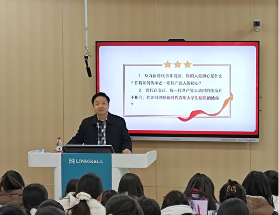梁开亮向学员们详细讲解了党的组织架构、纪律要求、优良作风以及共产党员应尽的义务与享有的权利,并将理论知识与实际案例紧密结合,生动形象地阐述了严守党纪党规的关键意义。他强调,学员们要端正入党动机,自觉以党员的标准严格要求自己,努力在学习和生活中发挥先锋模范作用。并鼓励同学们坚定理想信念,不断加强党性修养,为早日成为一名合格的共产党员而努力奋斗。