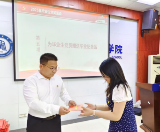 此次特殊主题党日活动以“重温一次入党誓词、聆听一次党课、书写一份廉洁从业倡议、观看一部红色微短片、参观一次红色文化基地、定格一张党旗合照”为载体,将党性教育、纪律教育与情感教育深度融合,为毕业生党员上好了离校前的“最后一堂党课”,激励他们牢记党员身份,践行初心使命,在新的人生征程中以昂扬的斗志和优良的作风,为党和国家的事业发展贡献力量。