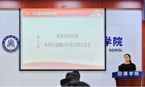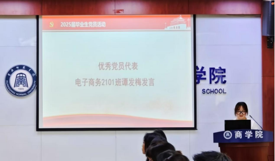 优秀党员代表兰怡凡、谭发梅依次发言,分享了在校期间的学习成长经历与感悟,表达了她们对党组织培养的感激之情及未来继续发挥党员先锋模范作用的坚定信念,引发全场共鸣。