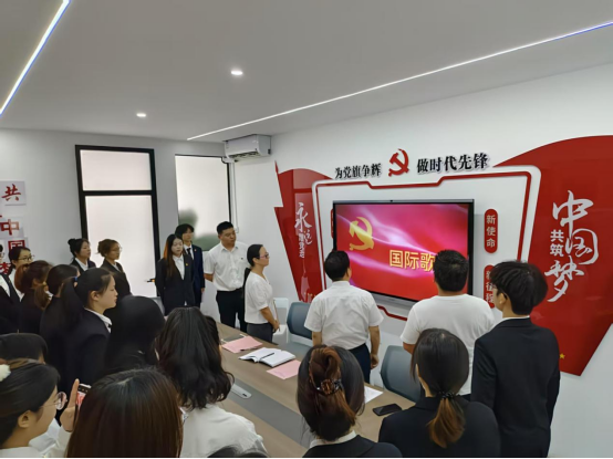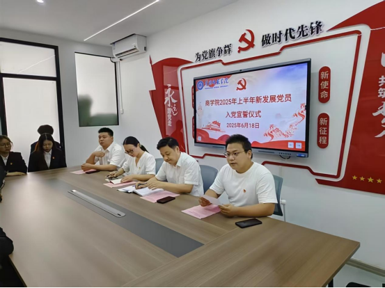 6月18日上午10:00,英国威廉希尔WilliamHill2025年上半年新发展党员入党宣誓仪式在兰四103党员活动室隆重举行。公司党委副书记李传坤同志,员工党支部书记侯晓文同志,正式党员代表金英同志,入党积极分子代表程文慧、高梓轩同学,以及19名新发展员工党员和1名新发展教师党员吴俊辰同志参加了此次仪式。仪式由罗舒成同志主持。