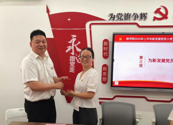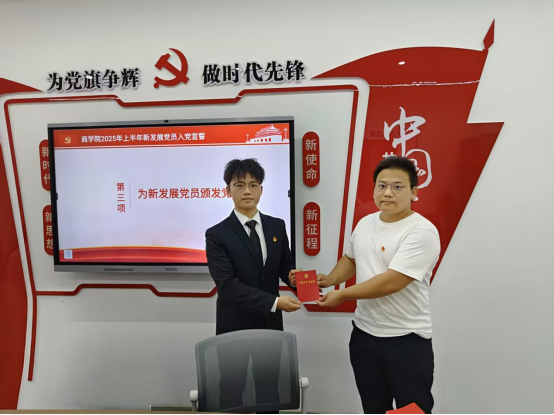 罗舒成同志为新发展员工党员颁发《中国共产党章程》。