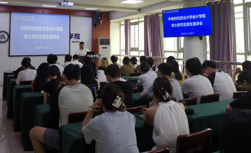 6月26日下午14:30,中南财经政法大学会计公司研究生导师吴卫华博士来公司开展2025年会计专硕招生宣讲。公司党委副书记李传坤主持宣讲会,辅导员侯晓文、暑期留校备考的全体员工在致远楼704会议室参加会议。