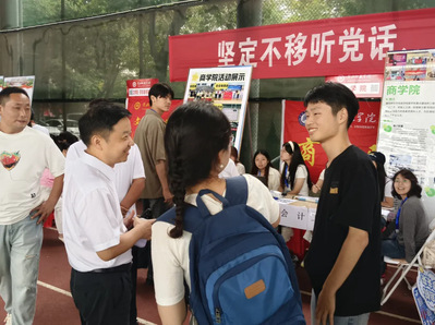 领导老师们穿梭在迎新点,与新生及家长亲切交谈,询问路途情况、聊聊对校园的初印象,温暖的话语驱散了初来乍到的陌生感。